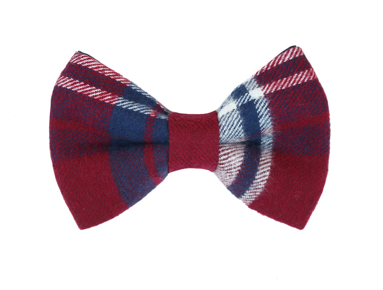 Our pet bow ties are made with high quality fabric and a built in stabilizer to prevent from becoming squished over wear. Each one has an elastic loop that slip on your pets collar. Each bow tie has a coordinating color in the inside to match. Each bow tie may have a different pattern, depending on how it's cut.