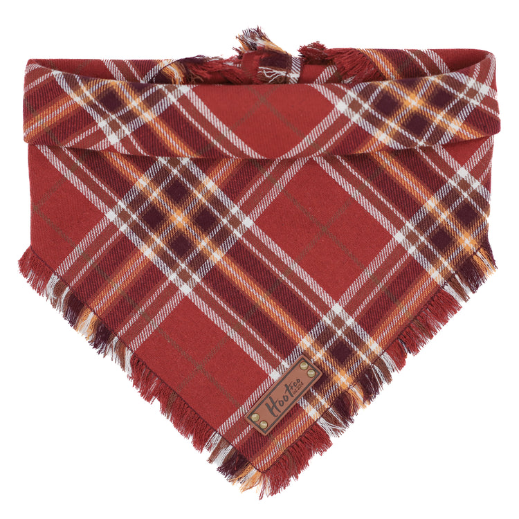 Frayed Bandana - Each bandana features a faux leather tag, frayed edges around all four edges, and an added snap for durability. Simply roll + tie the bandana to fit your pup. This style has more sizing adjustability than a snap on.