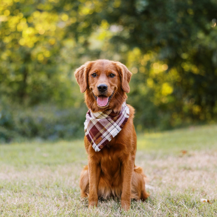 Snap On Bandana - Cotton flannel fabric, a coordinating solid backing and a durable Hoot + Co logo metal snap. Each bandana is hand cut and sewn to fit your animal precisely. Our bandanas feature a curved neck for a comfortable fit that won’t bunch up. All of our bandanas are reversible! Just simply snap them on the other way and you have a solid bandana also, perfect for adding your favorite patch to!