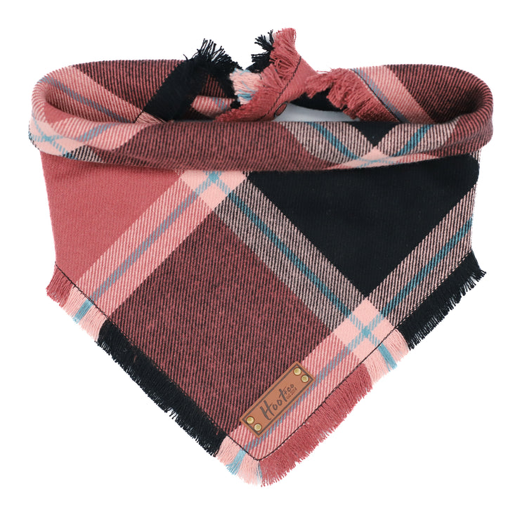 Frayed Bandana - Each bandana features a faux leather tag, frayed edges around all four edges, and an added snap for durability. Simply roll + tie the bandana to fit your pup. This style has more sizing adjustability than a snap on.