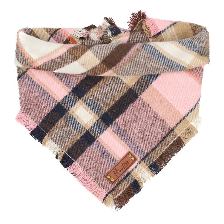 Snap On Bandana - Cotton flannel fabric, a coordinating solid backing and a durable Hoot + Co logo metal snap. Each bandana is hand cut and sewn to fit your animal precisely. Our bandanas feature a curved neck for a comfortable fit that won’t bunch up. All of our bandanas are reversible! Just simply snap them on the other way and you have a solid bandana also, perfect for adding your favorite patch to!