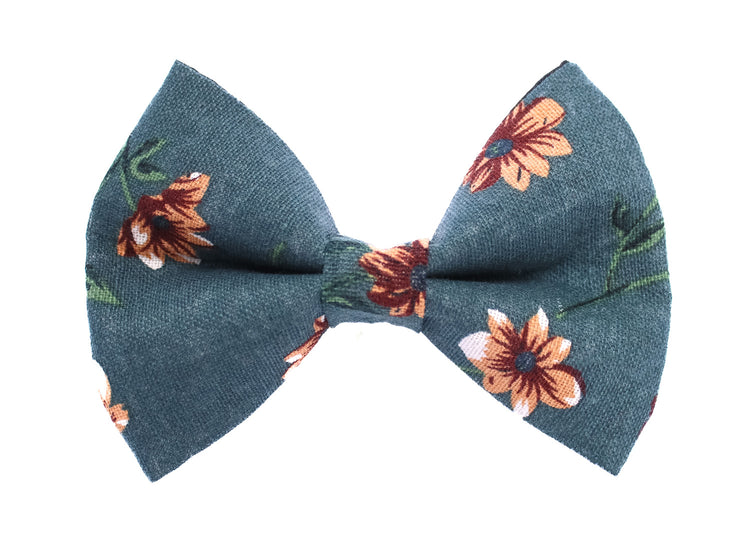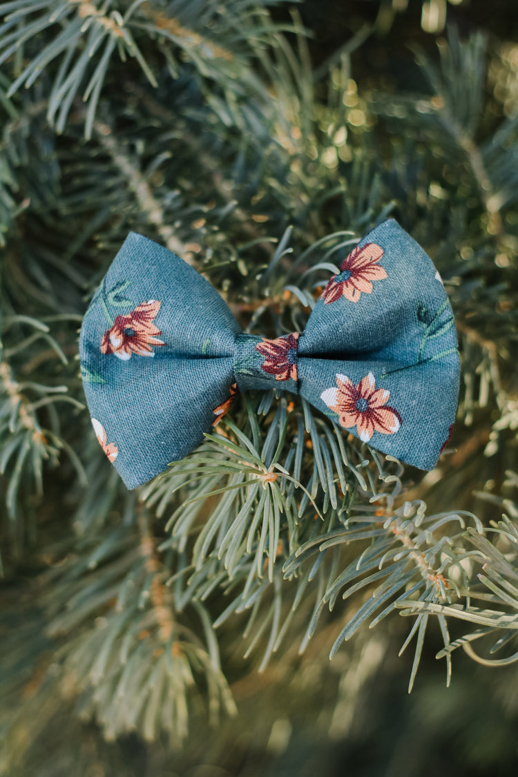 Our pet bow ties are made with high quality fabric and a built in stabilizer to prevent from becoming squished over wear. Each one has an elastic loop that slip on your pets collar. Each bow tie has a coordinating color in the inside to match. Each bow tie may have a different pattern, depending on how it's cut.