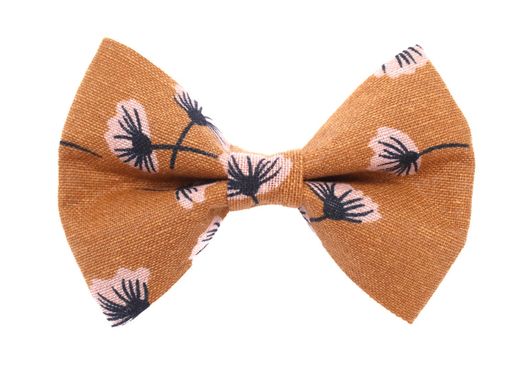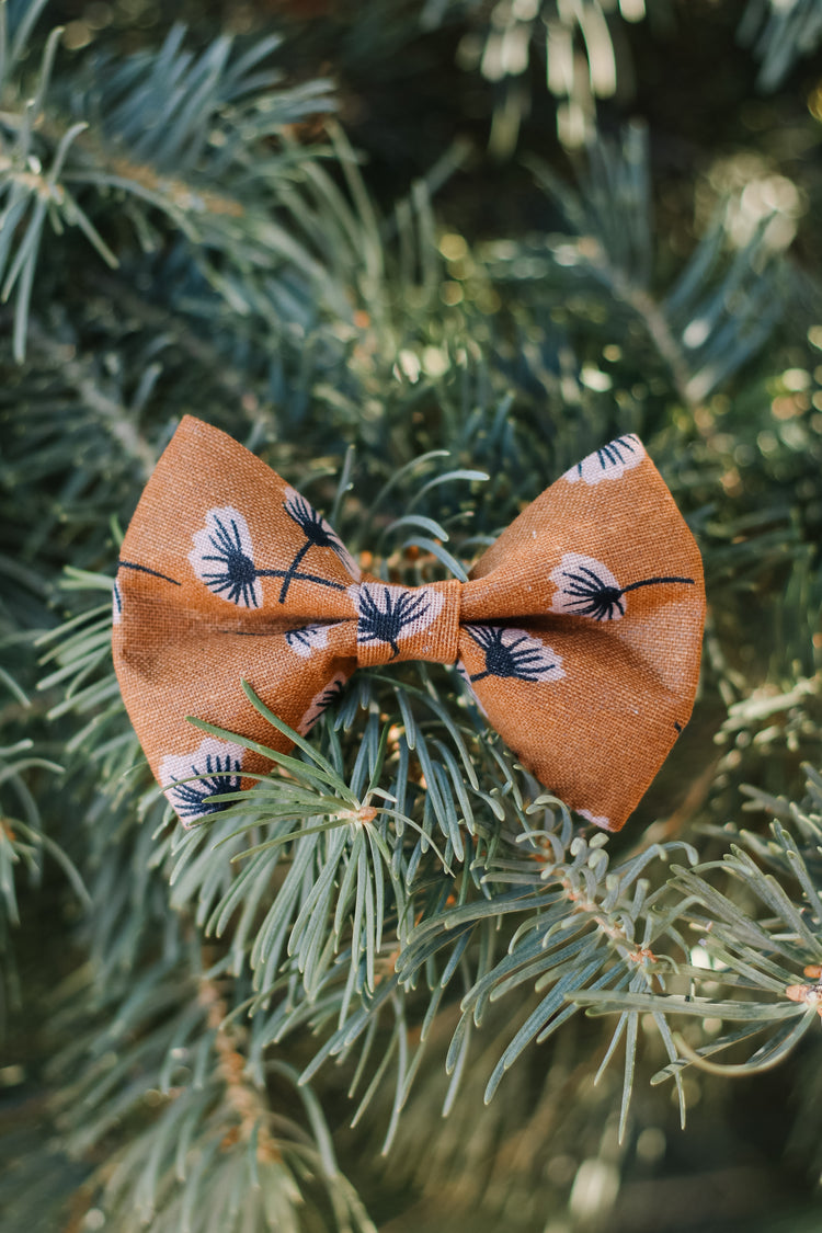 Our pet bow ties are made with high quality fabric and a built in stabilizer to prevent from becoming squished over wear. Each one has an elastic loop that slip on your pets collar. Each bow tie has a coordinating color in the inside to match. Each bow tie may have a different pattern, depending on how it's cut.