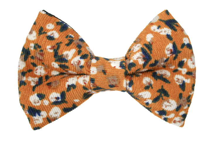 Our pet bow ties are made with high quality fabric and a built in stabilizer to prevent from becoming squished over wear. Each one has a velcro loop that wraps snugly on your pets collar. Each bow tie has a coordinating color in the inside to match. Each bow tie may have a different pattern, depending on how it's cut.