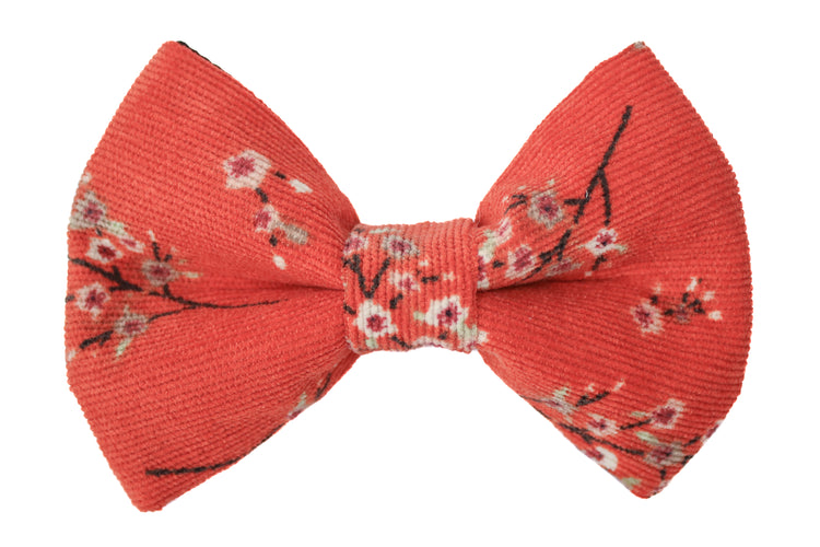 Our pet bow ties are made with high quality fabric and a built in stabilizer to prevent from becoming squished over wear. Each one has a velcro loop that wraps snugly on your pets collar. Each bow tie has a coordinating color in the inside to match. Each bow tie may have a different pattern, depending on how it's cut.