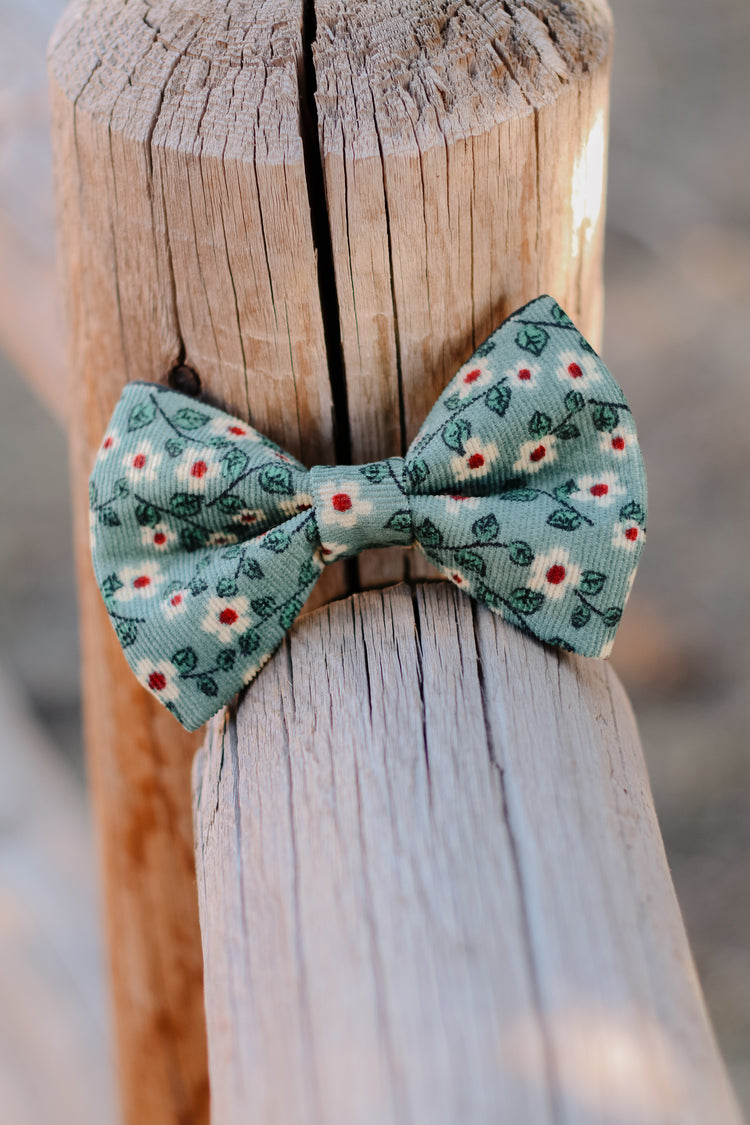 Our pet bow ties are made with high quality fabric and a built in stabilizer to prevent from becoming squished over wear. Each one has an elastic loop that slip on your pets collar. Each bow tie has a coordinating color in the inside to match. Each bow tie may have a different pattern, depending on how it's cut.