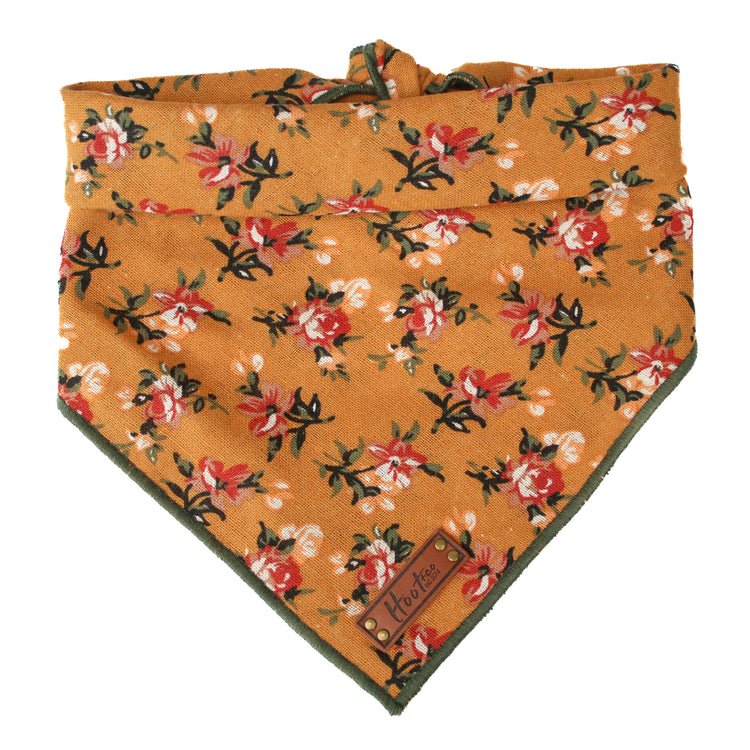 Snap On Bandana - Cotton fabric, a coordinating solid backing and a durable Hoot + Co logo metal snap. Each bandana is hand cut and sewn to fit your animal precisely. Our bandanas feature a curved neck for a comfortable fit that won’t bunch up. All of our bandanas are reversible! Just simply snap them on the other way and you have a solid bandana also, perfect for adding your favorite patch to!