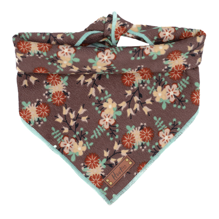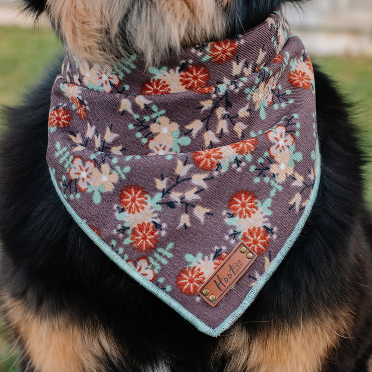 Rolled - Each bandana features a faux leather tag, frayed edges around all four edges, and an added snap for durability. Simply roll + tie the bandana to fit your pup. This style has more sizing adjustability than a snap on.