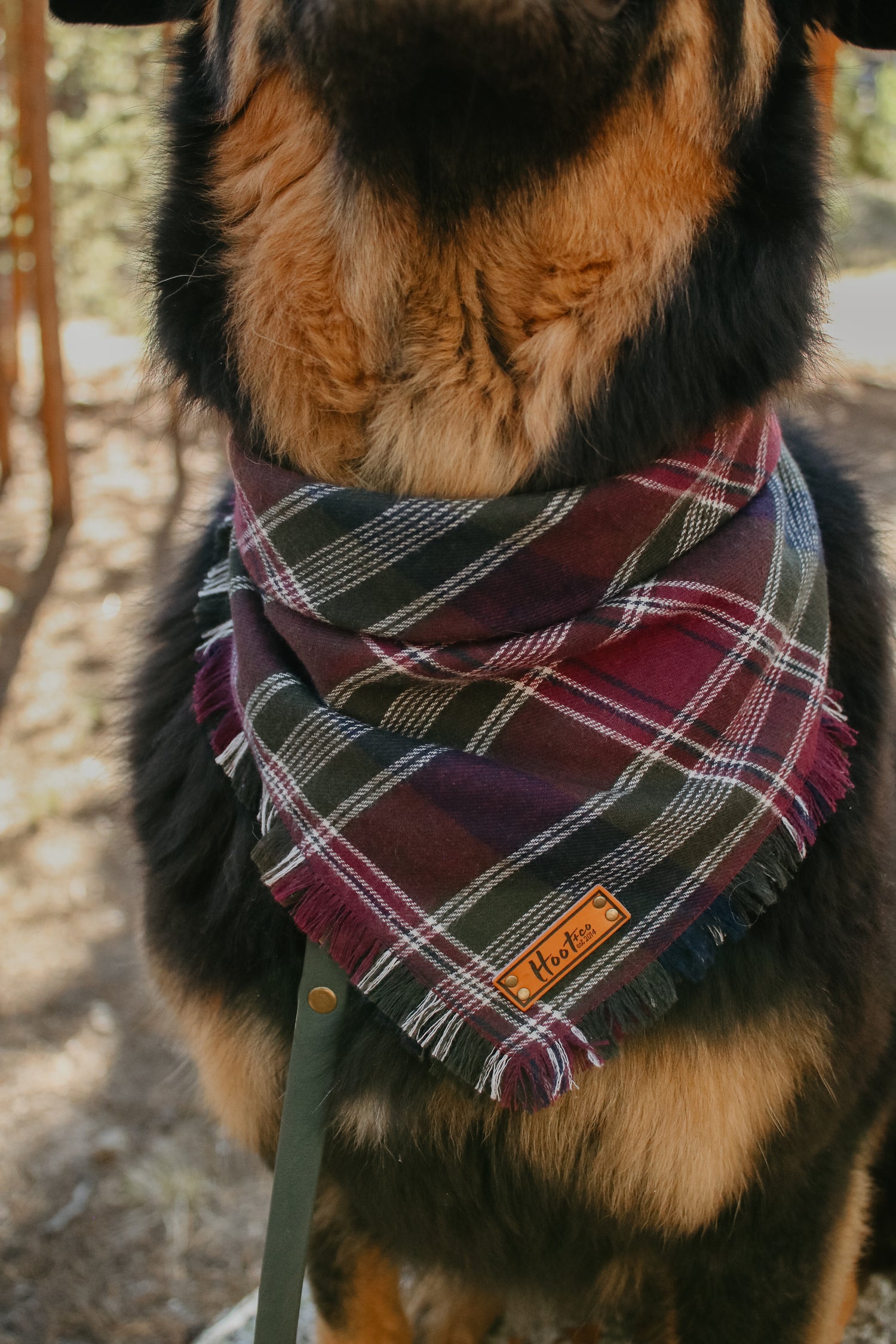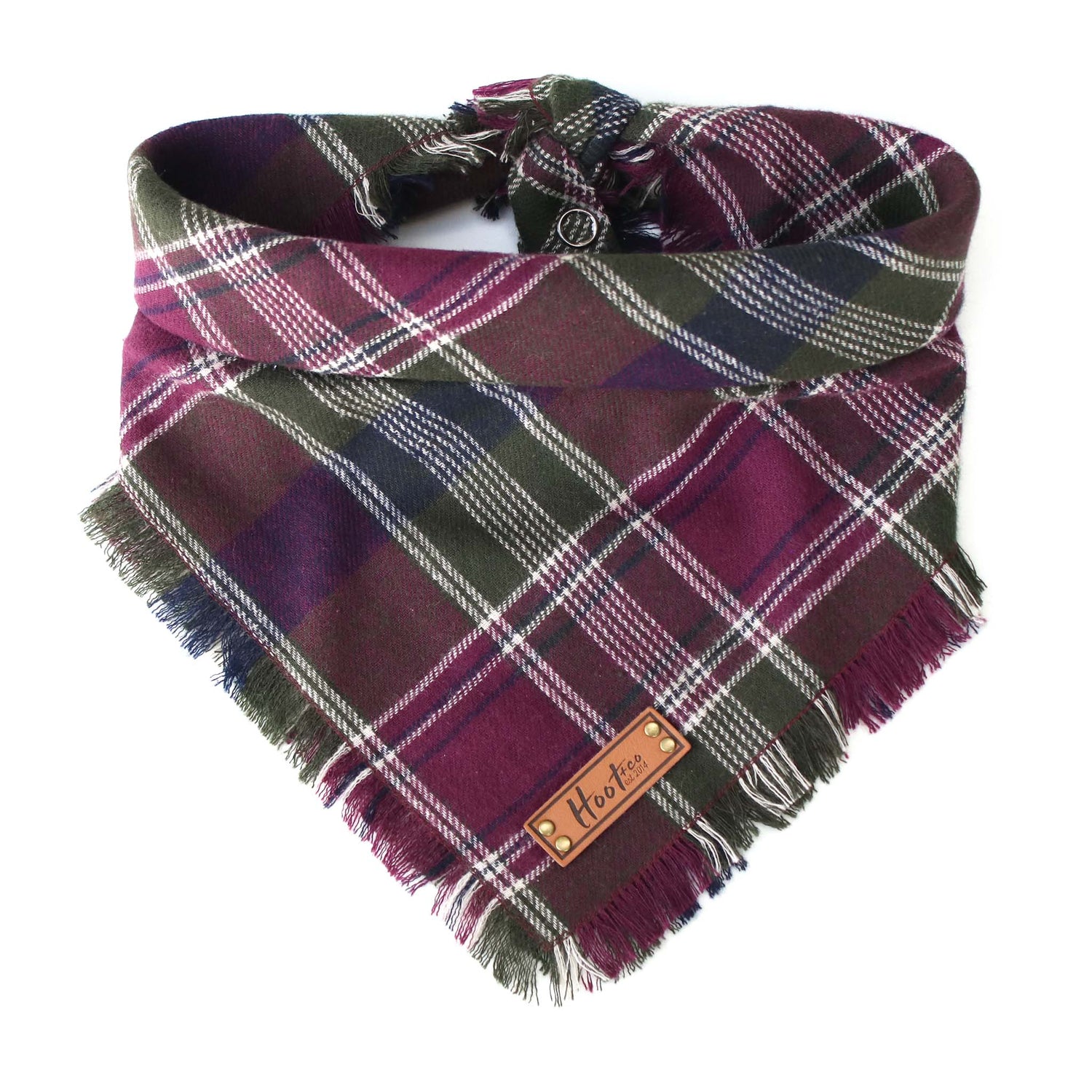 Snap On Bandana - Cotton flannel fabric, a coordinating solid backing and a durable Hoot + Co logo metal snap. Each bandana is hand cut and sewn to fit your animal precisely. Our bandanas feature a curved neck for a comfortable fit that won’t bunch up. All of our bandanas are reversible! Just simply snap them on the other way and you have a solid bandana also, perfect for adding your favorite patch to!