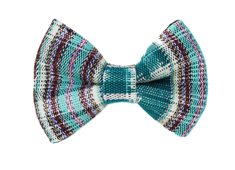 Our pet bow ties are made with high quality fabric and a built in stabilizer to prevent from becoming squished over wear. Each one has a velcro loop that wraps around your pets collar. Each bow tie has a coordinating color in the inside to match. Each bow tie may have a different pattern, depending on how it's cut.