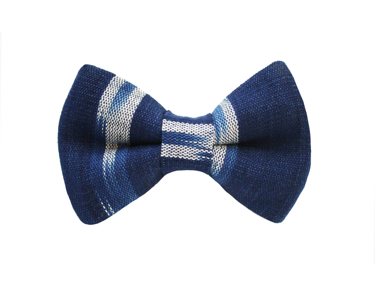 Our pet bow ties are made with high quality fabric and a built in stabilizer to prevent from becoming squished over wear. Each one has an elastic loop that slip on your pets collar. Each bow tie has a coordinating color in the inside to match. Each bow tie may have a different pattern, depending on how it's cut.