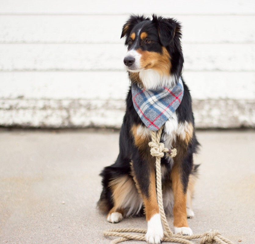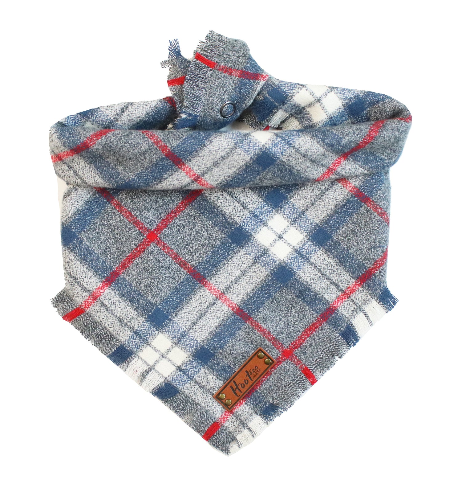 Snap On Bandana - Cotton flannel fabric, a coordinating solid backing and a durable Hoot + Co logo metal snap. Each bandana is hand cut and sewn to fit your animal precisely. Our bandanas feature a curved neck for a comfortable fit that won’t bunch up. All of our bandanas are reversible! Just simply snap them on the other way and you have a solid bandana also, perfect for adding your favorite patch to!