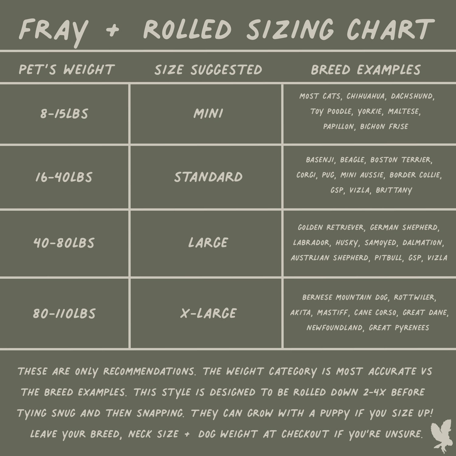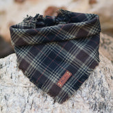 Frayed Bandana - Each bandana features a faux leather tag, frayed edges around all four edges, and an added snap for durability. Simply roll + tie the bandana to fit your pup. This style has more sizing adjustability than a snap on.