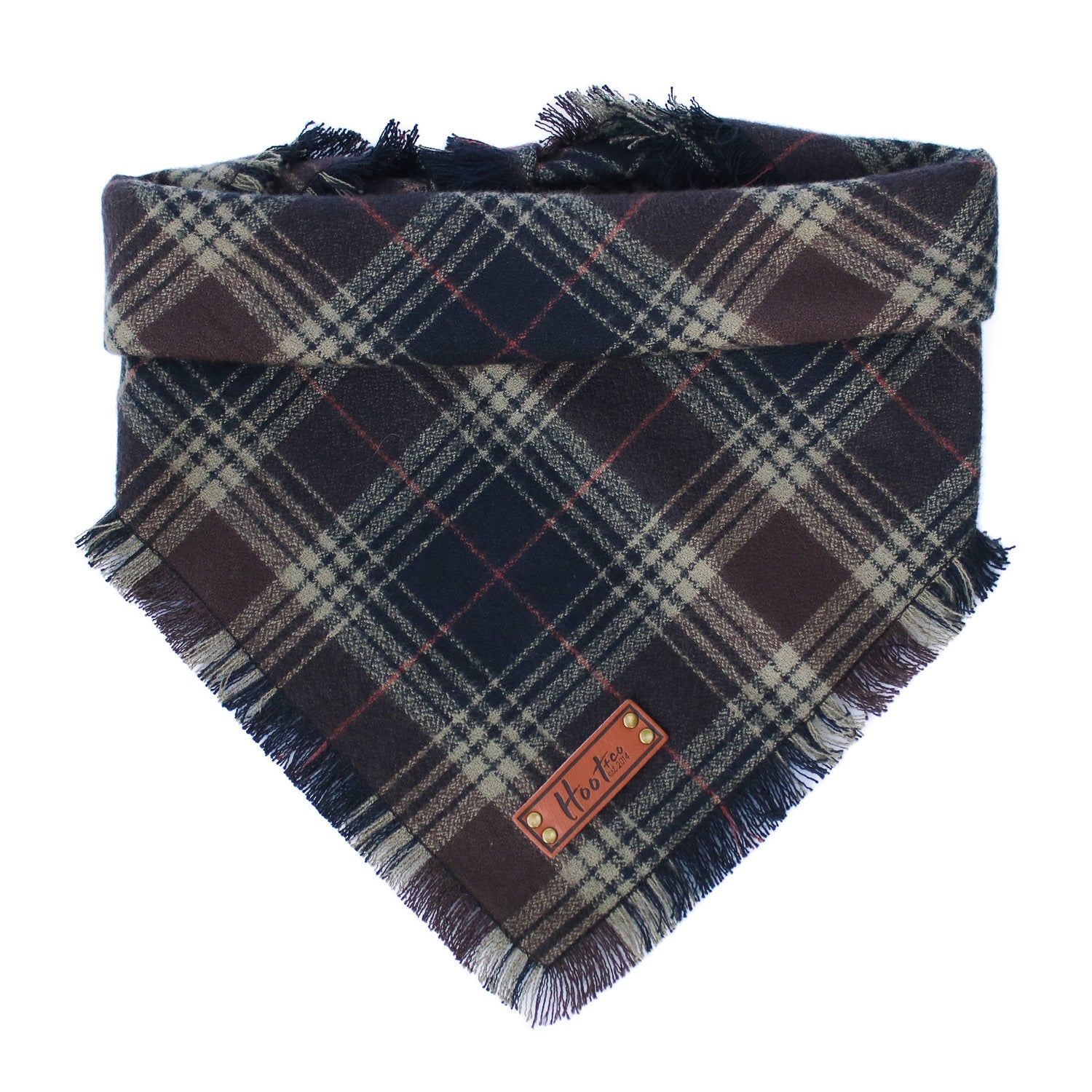 Snap On Bandana - Cotton flannel fabric, a coordinating solid backing and a durable Hoot + Co logo metal snap. Each bandana is hand cut and sewn to fit your animal precisely. Our bandanas feature a curved neck for a comfortable fit that won’t bunch up. All of our bandanas are reversible! Just simply snap them on the other way and you have a solid bandana also, perfect for adding your favorite patch to!