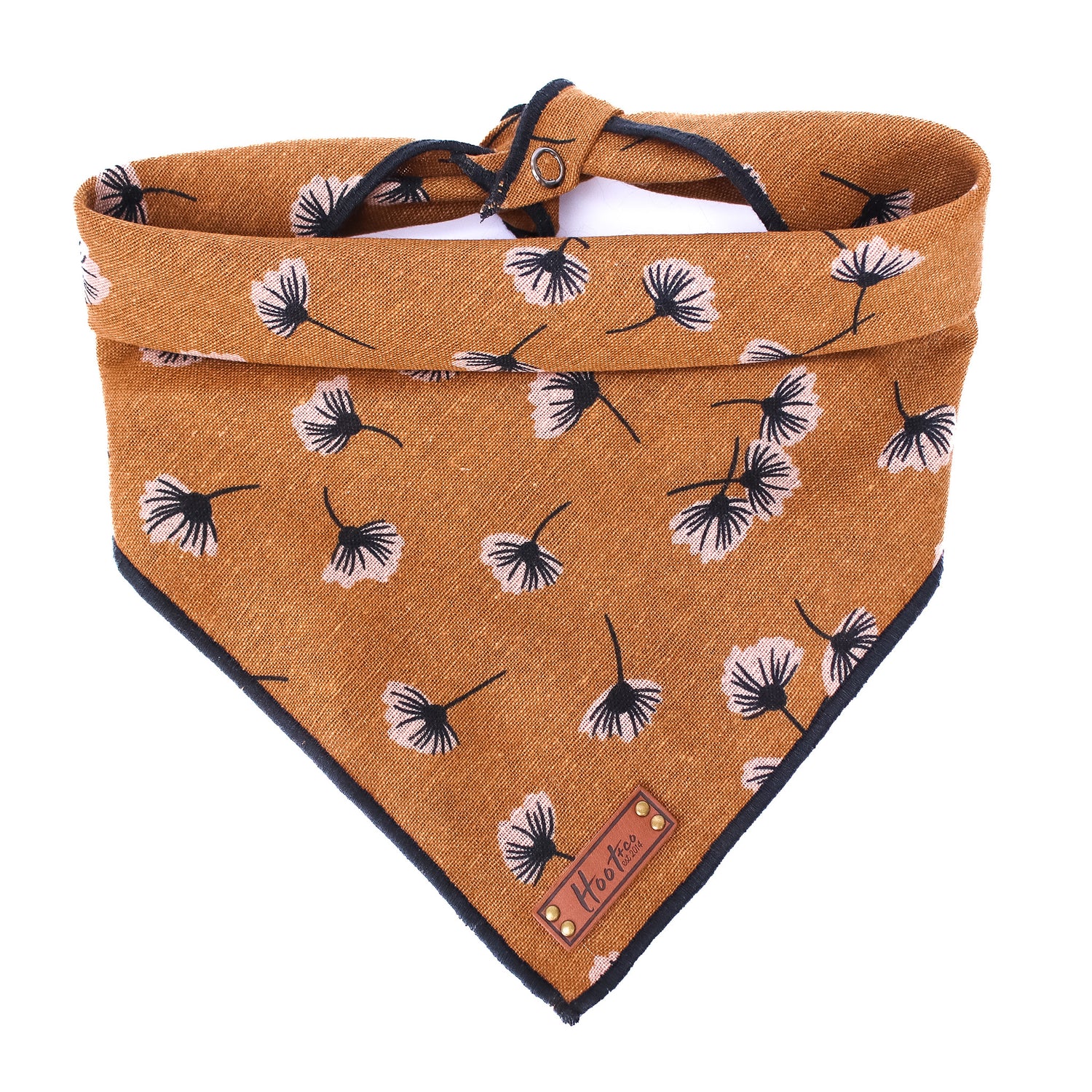 Snap On Bandana - Cotton fabric, a coordinating solid backing and a durable Hoot + Co logo metal snap. Each bandana is hand cut and sewn to fit your animal precisely. Our bandanas feature a curved neck for a comfortable fit that won’t bunch up. All of our bandanas are reversible! Just simply snap them on the other way and you have a solid bandana also, perfect for adding your favorite patch to!