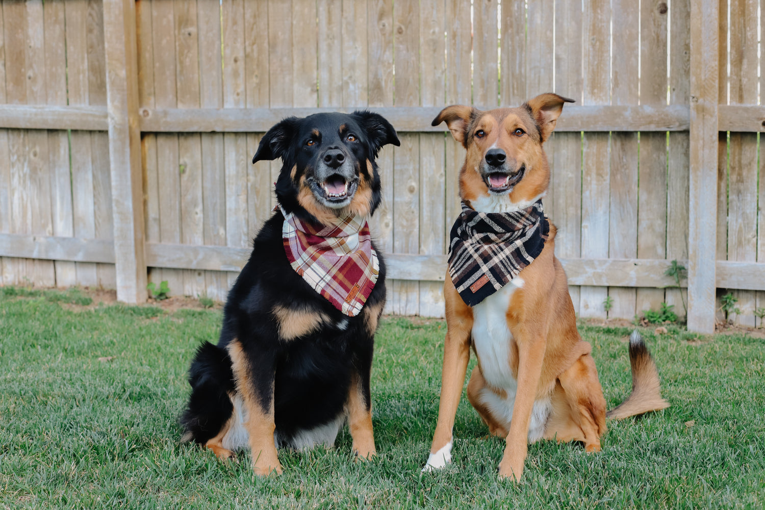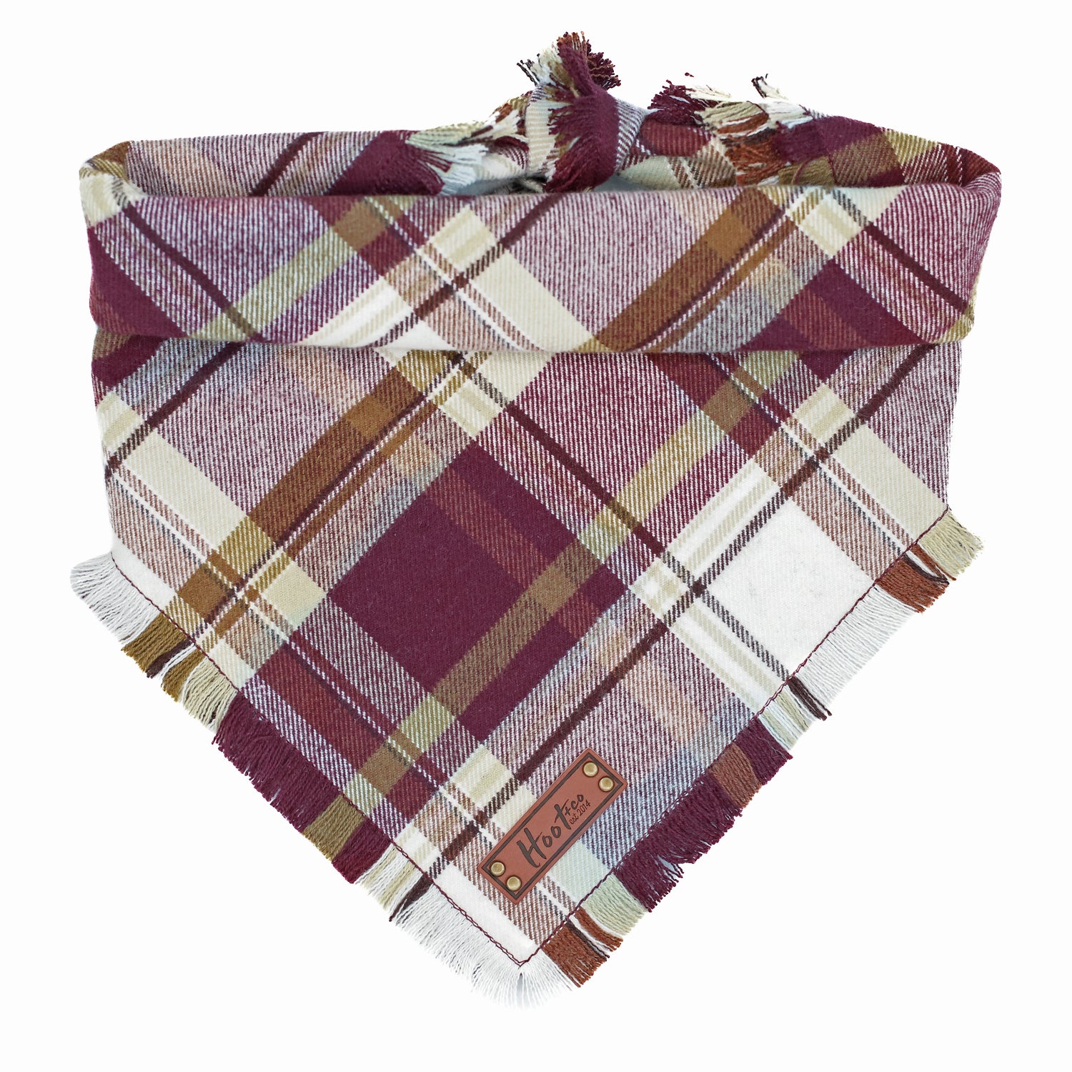 Snap On Bandana - Cotton flannel fabric, a coordinating solid backing and a durable Hoot + Co logo metal snap. Each bandana is hand cut and sewn to fit your animal precisely. Our bandanas feature a curved neck for a comfortable fit that won’t bunch up. All of our bandanas are reversible! Just simply snap them on the other way and you have a solid bandana also, perfect for adding your favorite patch to!