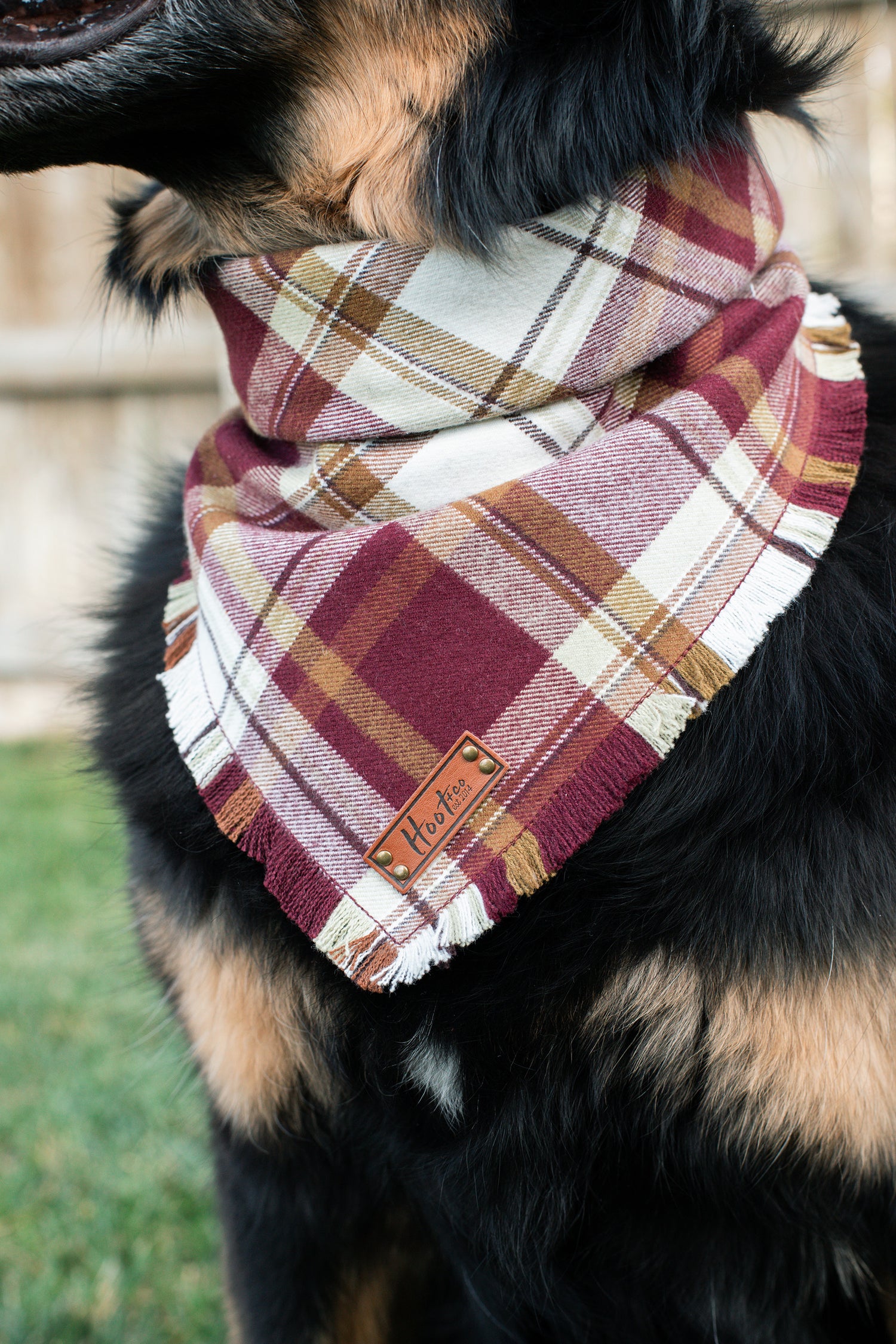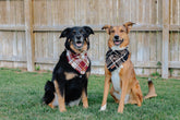 Frayed Bandana - Each bandana features a faux leather tag, frayed edges around all four edges, and an added snap for durability. Simply roll + tie the bandana to fit your pup. This style has more sizing adjustability than a snap on.