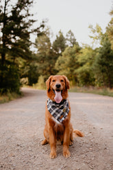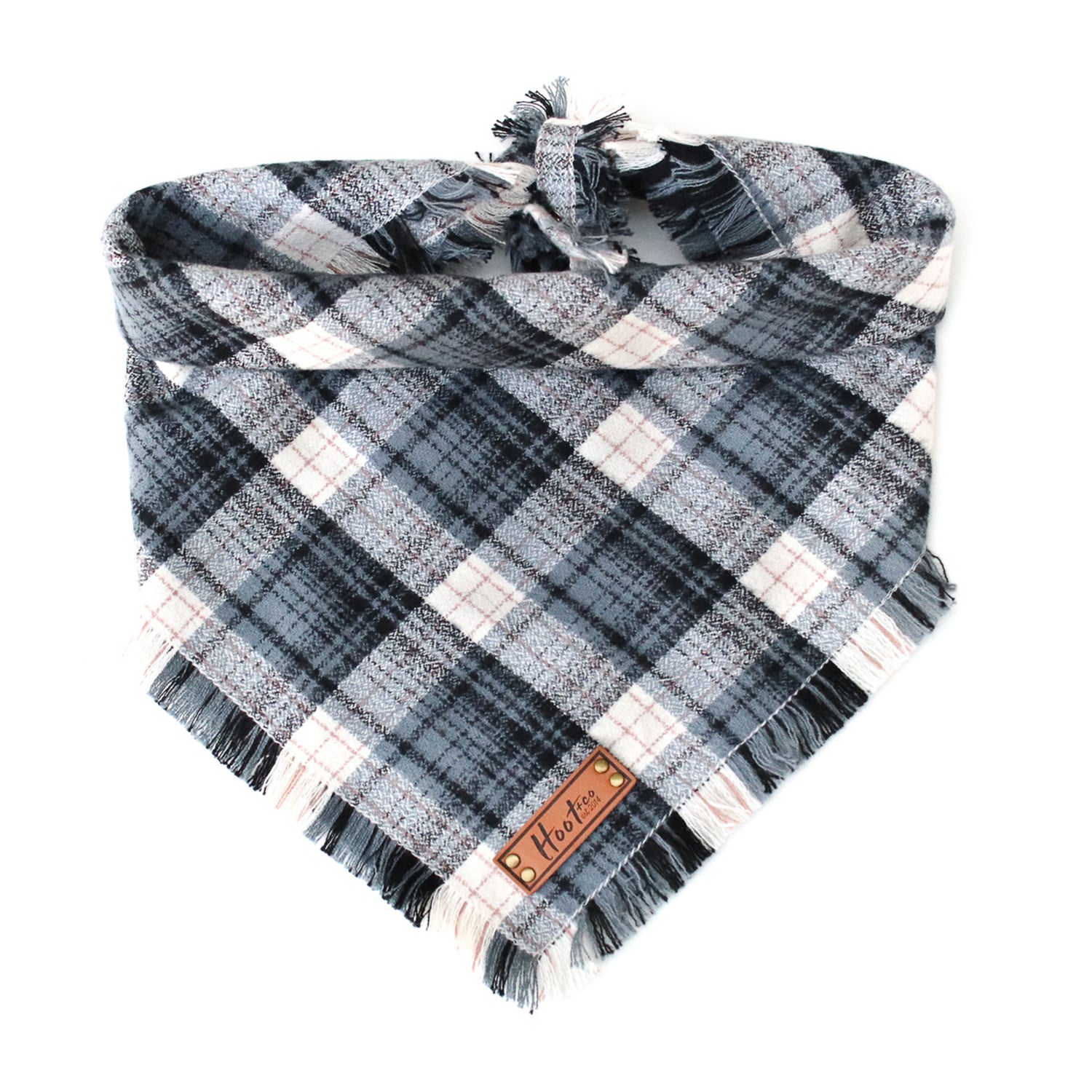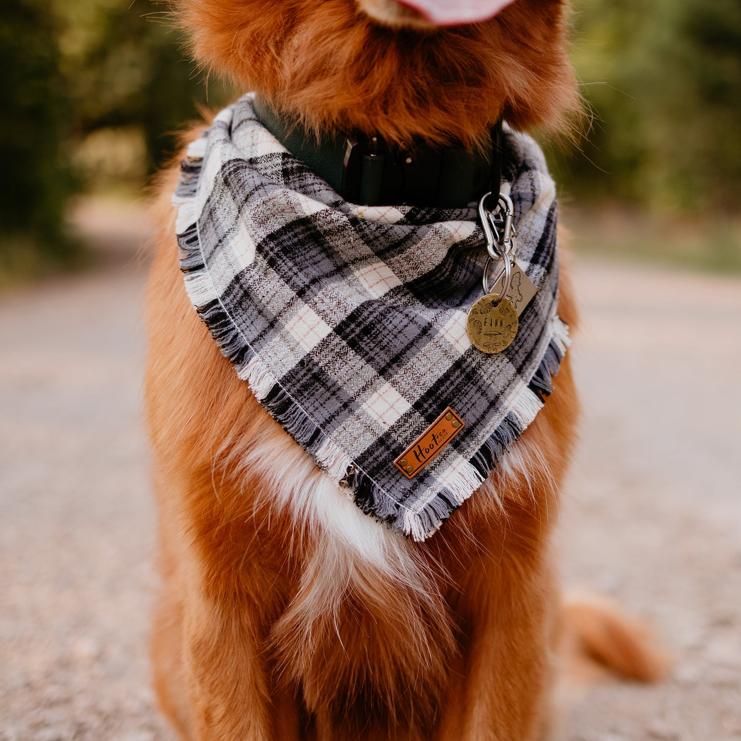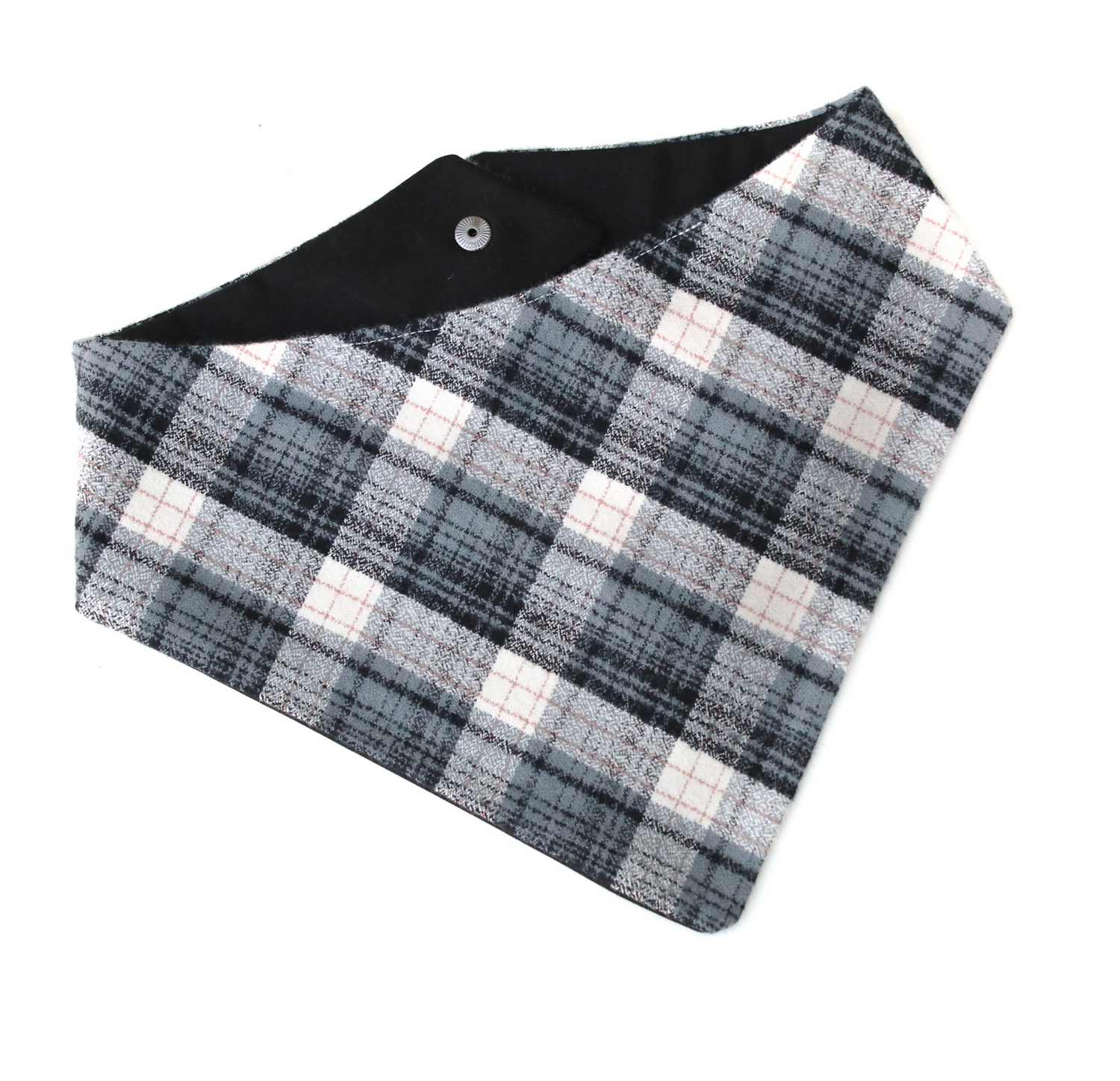 Snap On Bandana - Cotton flannel fabric, a coordinating solid backing and a durable Hoot + Co logo metal snap. Each bandana is hand cut and sewn to fit your animal precisely. Our bandanas feature a curved neck for a comfortable fit that won’t bunch up. All of our bandanas are reversible! Just simply snap them on the other way and you have a solid bandana also, perfect for adding your favorite patch to!