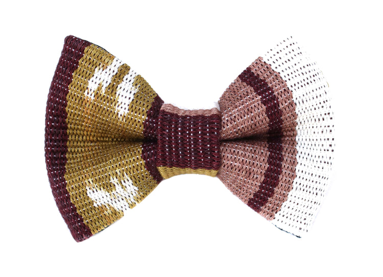Our pet bow ties are made with high quality fabric and a built in stabilizer to prevent from becoming squished over wear. Each one has a velcro loop that wraps around your pets collar. Each bow tie has a coordinating color in the inside to match. Each bow tie may have a different pattern, depending on how it's cut.