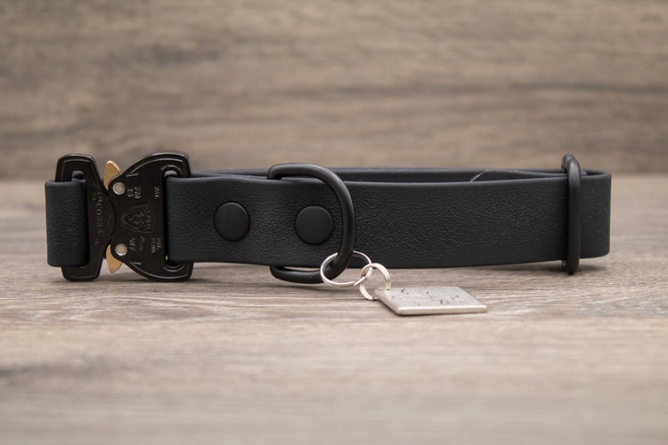 Your new favorite adventure collar! All of our collars are made with a custom coated webbing and our very own colors! Although they may look similar to leather, they are made with a durable coated webbing that can withstand the elements. They are waterproof, mold resistant, and low maintenance! We use zinc alloy coated buckles and solid brass hardware, both of which are resistant to rust. Brass hardware can patina with use when exposed to water + sun and may rub onto lighter coated coats.