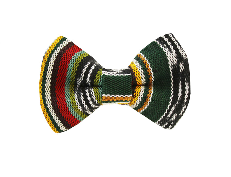Our pet bow ties are made with high quality fabric and a built in stabilizer to prevent from becoming squished over wear. Each one has an elastic loop that slip on your pets collar. Each bow tie has a coordinating color in the inside to match. Each bow tie may have a different pattern, depending on how it's cut.