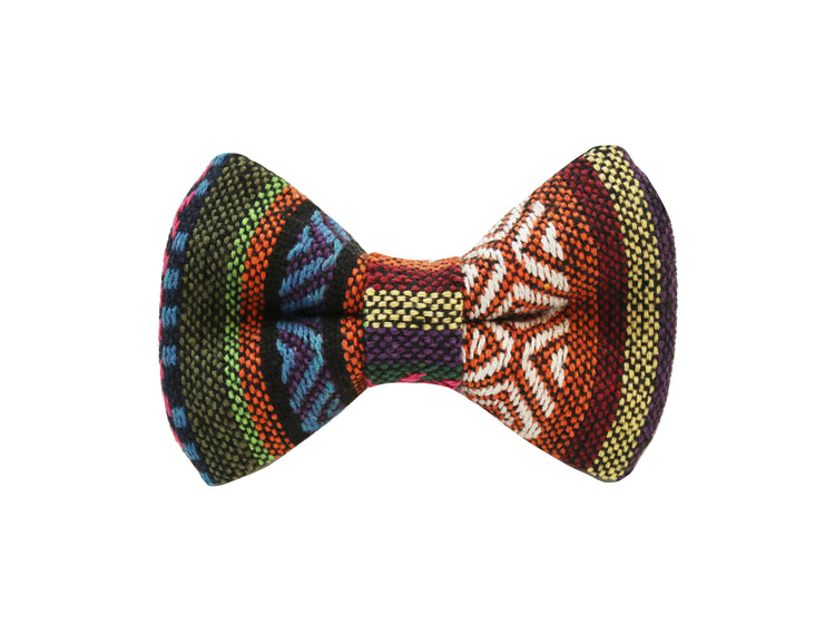 Our pet bow ties are made with high quality fabric and a built in stabilizer to prevent from becoming squished over wear. Each one has an elastic loop that slip on your pets collar. Each bow tie has a coordinating color in the inside to match. Each bow tie may have a different pattern, depending on how it's cut.