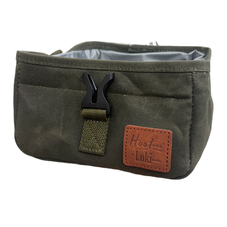 Our collapsible bowls are made with 16oz waxed canvas and a BPA free waterproof interior lining. They measure 7" x 7" x 4", the perfect size for one or two pups! They fold down and can be buckled shut for storage and traveling.