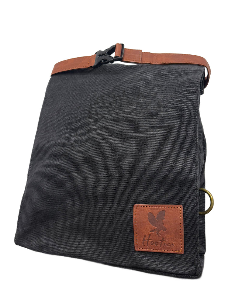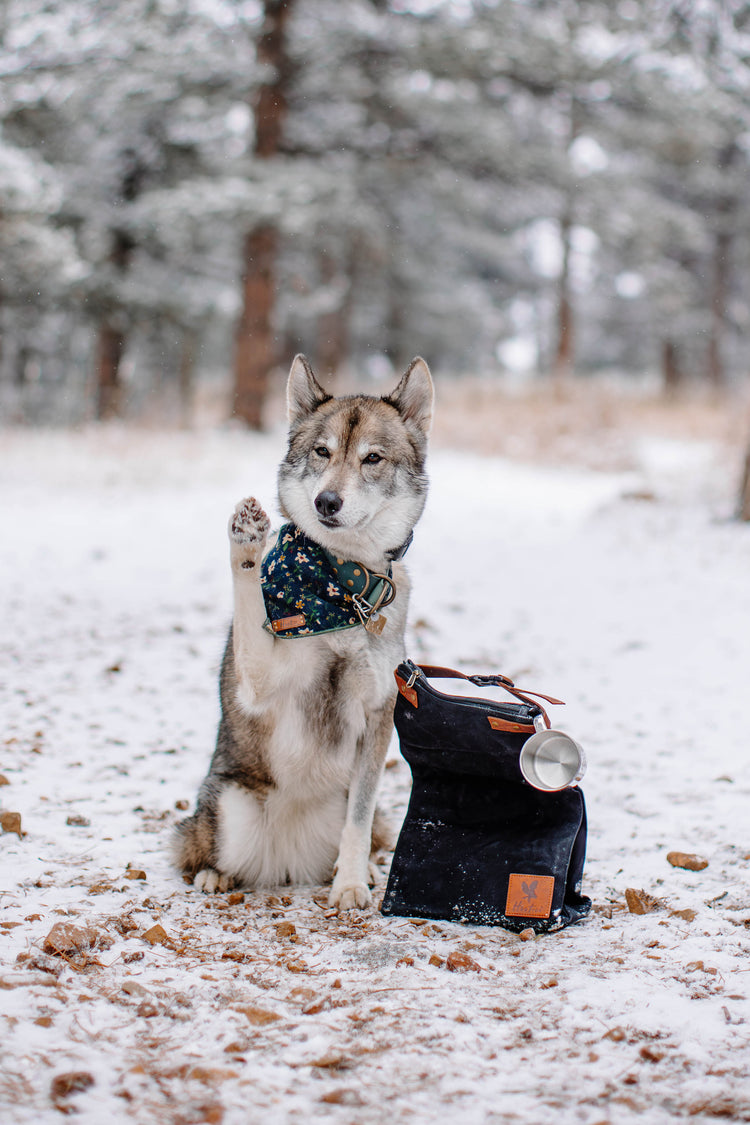 Our kibble bag was designed to last! They are made with 16oz waxed canvas and lined with a BPA free waterproof lining. Extra strong stitching, a smooth antique brass YKK zipper, a YKK buckle, and faux leather strapping that is so soft, yet durable! Each kibble bags holds approx. 40 cups of dry dog food. It can also be used for dehydrated or jerky style dog food, a treat bag for on the road (think a bunch of smaller treat bags), and more!