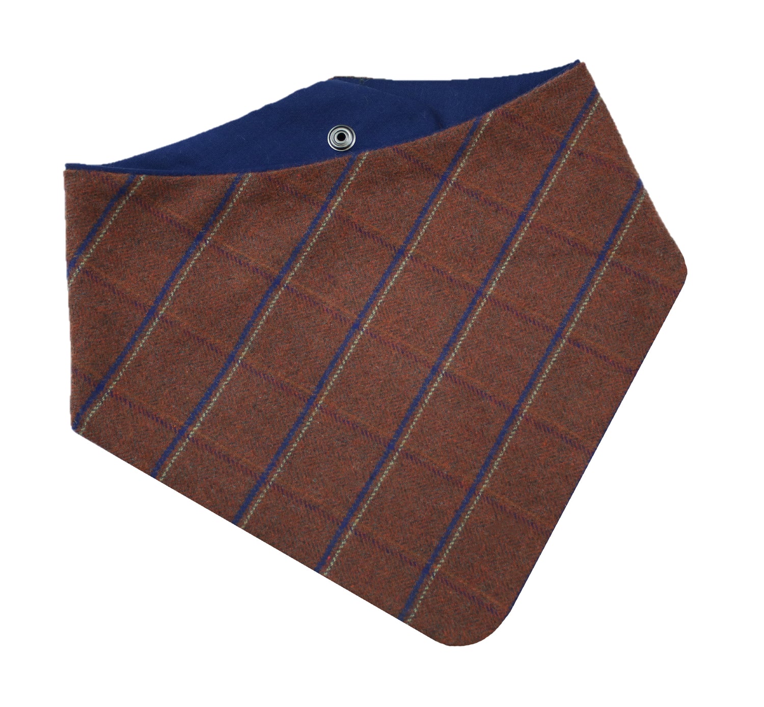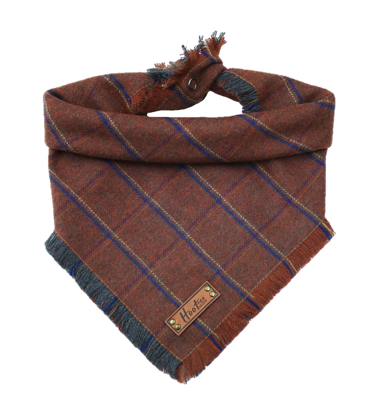Snap On Bandana - Cotton flannel fabric, a coordinating solid backing and a durable Hoot + Co logo metal snap. Each bandana is hand cut and sewn to fit your animal precisely. Our bandanas feature a curved neck for a comfortable fit that won’t bunch up. All of our bandanas are reversible! Just simply snap them on the other way and you have a solid bandana also, perfect for adding your favorite patch to!