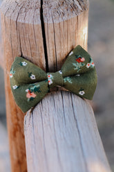 Our pet bow ties are made with high quality fabric and a built in stabilizer to prevent from becoming squished over wear. Each one has an elastic loop that slip on your pets collar. Each bow tie has a coordinating color in the inside to match. Each bow tie may have a different pattern, depending on how it's cut.