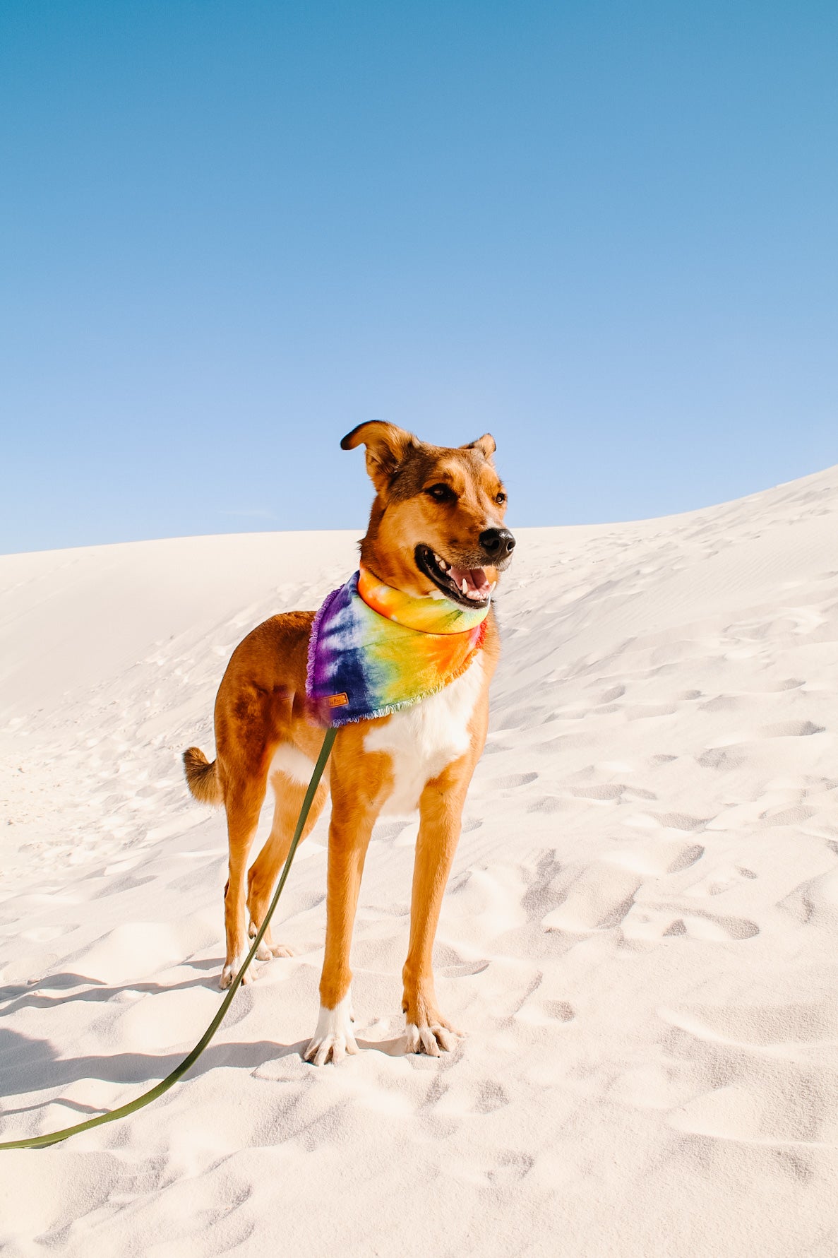 Each bandana is pre-washed, dyed, rewashed, ironed to set the dye and packaged. They have been pre-shrunk and may fade a little over time, but the dye is permanent. The will not bleed when wet nor stain your pets fur. Please remember each one is unique, meaning the patterns and shades of coloring may look different on every single one. We aim to have minimal white but how the dye takes on each is unique.