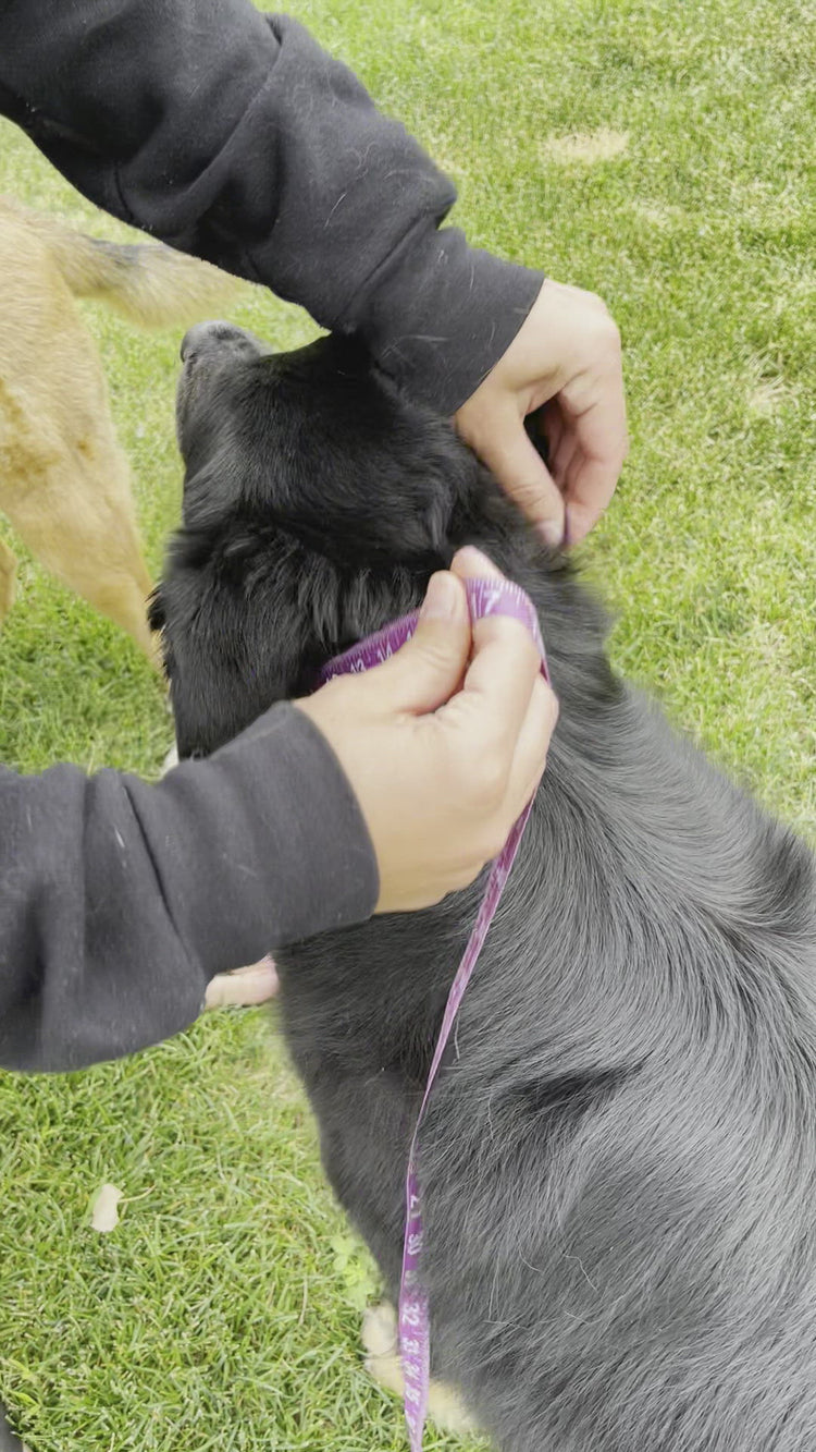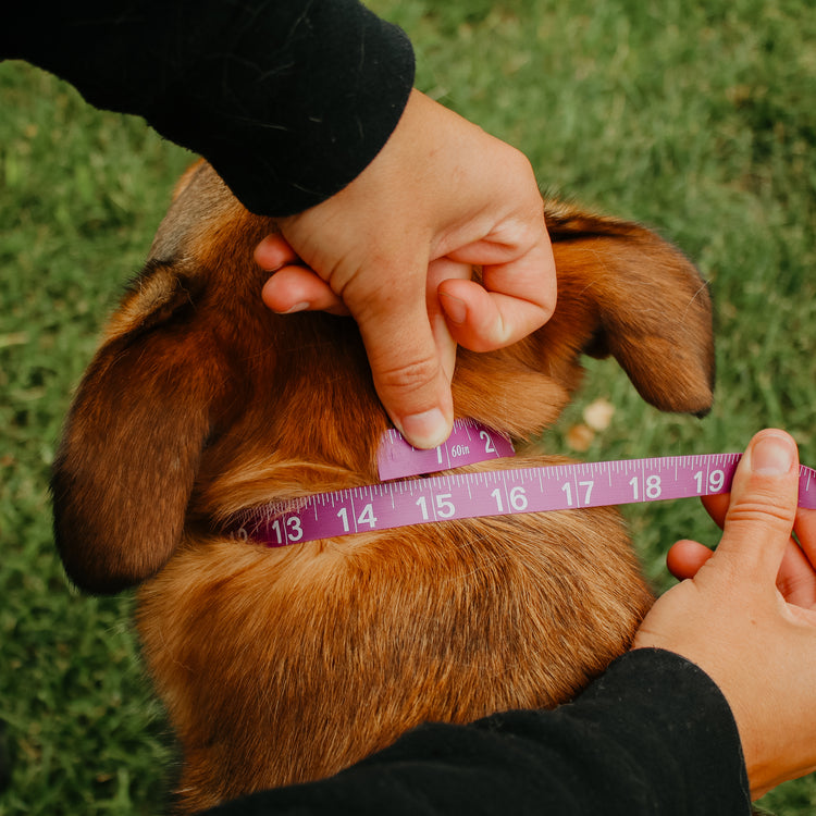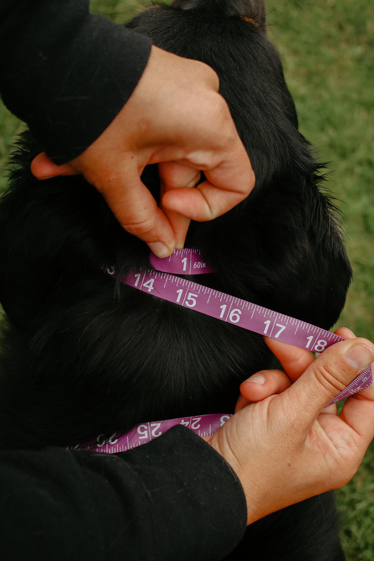 VERY IMPORTANT SIZING INFO: Measure your dog's neck exactly where you want the e collar to sit with soft measuring tape (see photo + video). Do not add extra length for the device, fluff, or anything else. Select the measurement listed to the nearest 0.5", size up 0.5" if the measurement falls in between ex.14.25", select 14.5" not 14".
