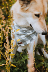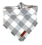 Frayed Bandana - Each bandana features a faux leather tag, frayed edges around all four edges, and an added snap for durability. Simply roll + tie the bandana to fit your pup. This style has more sizing adjustability than a snap on.